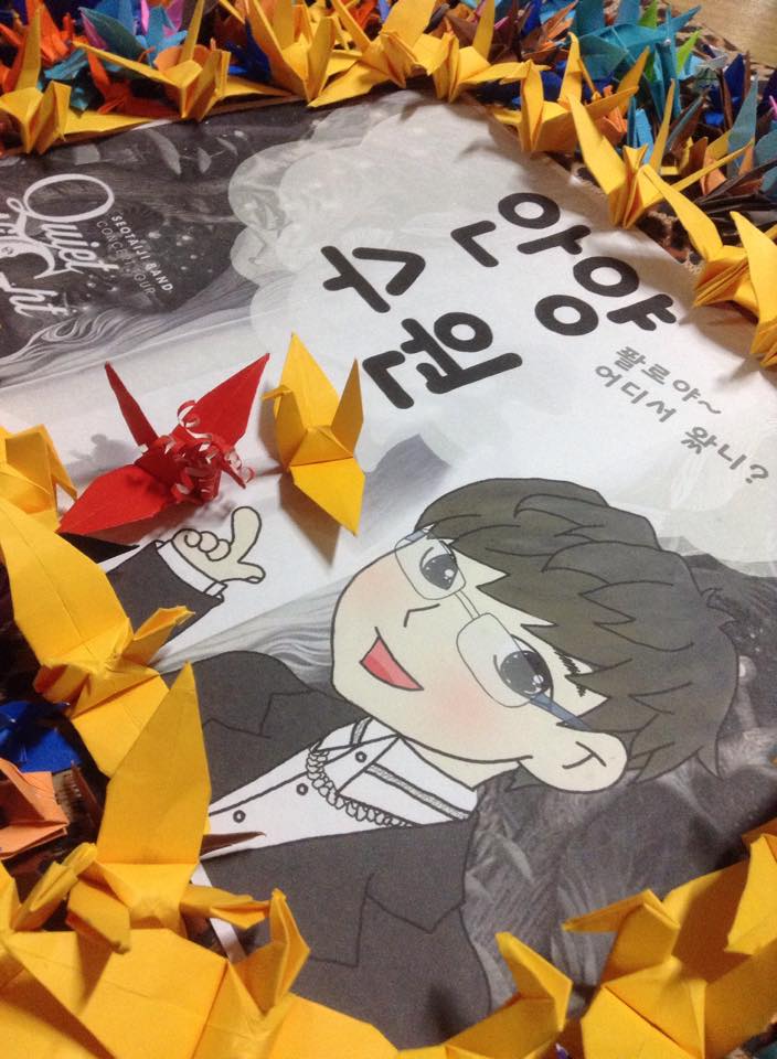 저희가 접은 학은 천마리도 채 안되지만 15~20명 내외의 매니아님들께서 공연 전, 기다림으로 설레였던 그 시간에 정성을 담아 틈틈히 접어주셨어요.