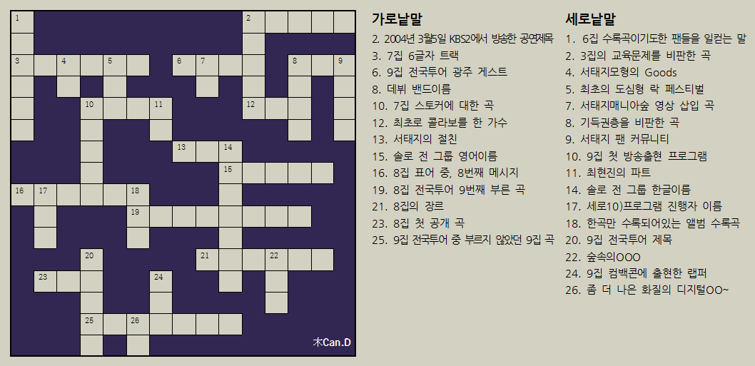 가로세로 크로스워드 만들었어요^ ^ 페이지 정보 작성자 木Can.D 회원 정보 보기 회원 정보 보기 작성일 15-01-27 21:03 본문 (서갤 위태중복)난이도 하 ㅋ 댓글목록 애플러님의 댓글 애플러 회원 정보 보기 회원 정보 보기 15-01-27 21:06 우와~ 우와~ 봄님의 댓글 봄 회원 정보 보기 회원 정보 보기 15-01-27 23:22 이야 진짜 대박이당 이야 진짜 대박이당 유별난여자님의 댓글 유별난여자 회원 정보 보기 회원 정보 보기 15-01-28 00:01 띠용~~~ 짱이셔요!!! 띠용~~~ 짱이셔요!!! 율아님의 댓글 율아 회원 정보 보기 회원 정보 보기 15-01-28 08:08 우와 어쩜 이런 생각을 하셨을까요? 짱입니다용~~~!!!! 우와 어쩜 이런 생각을 하셨을까요? 짱입니다용~~~!!!! 민뎅님의 댓글 민뎅 회원 정보 보기 회원 정보 보기 15-01-28 09:09 ㅋㅋㅋ잼나요 ㅋㅋㅋ잼나요 TOP LIST 해당 게시물을 신고하고자 하는 사유를 선택해 주세요. 허위 혹은 고의로 신고할 경우 포인트 차감 등 불이익이 발생할 수 있습니다. 상업광고, 스팸물 음란성 게시물 상품광고, 홍보글 폭력성, 혐오글 지적재산권, 저작권 침해 명예훼손, 욕설, 비방 도배글 미풍약속, 사회질서 위반 신고하기